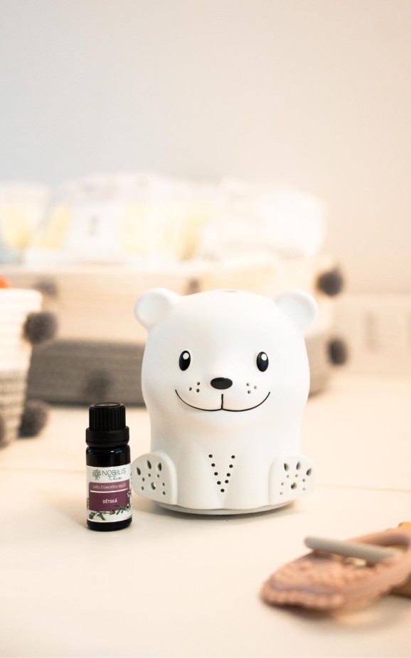 Útulnou atmosféru v dětském pokoji vykouzlí aroma difuzér v hravém designu medvídka. Díky ultrazvukové technologii šetrně rozptyluje vonnou mlhu po místnosti, a představuje tak perfektního pomocníka pro zvlhčení vzduchu, pročištění a bezpečné provonění prostoru éterickými oleji. Jejich účinky tak děti mohou přirozeně vdechovat a společně je oceníte i v období potíží, například při nachlazení, pro zklidnění před spaním nebo pro podporu koncentrace při učení. Tichý chod difuzéru neruší a barevné LED podsvícení funguje jako lampička s možností prolínání 7 druhů barev. Dětem rozzáří oči přiložený dárek (dětský náramek).